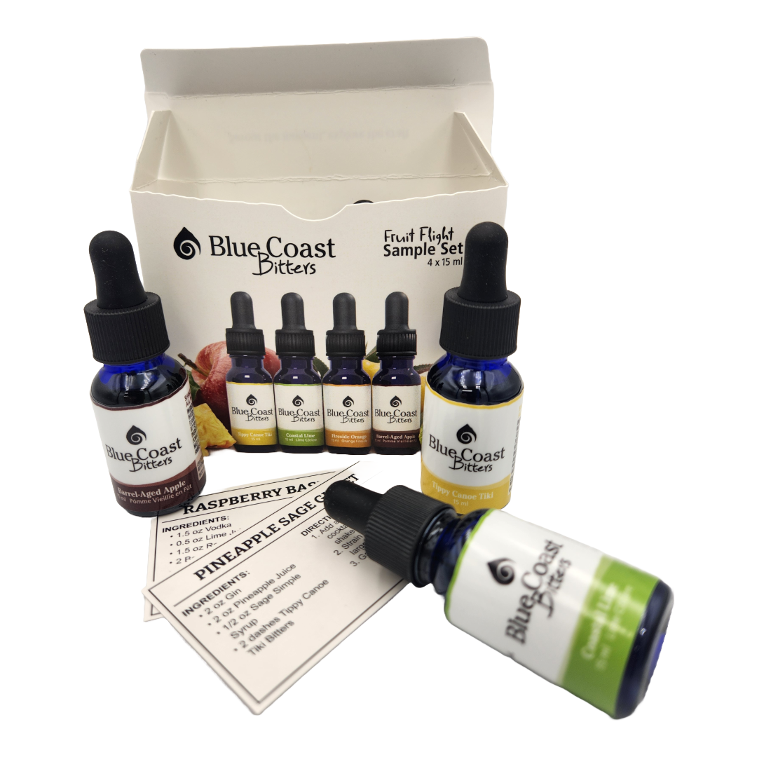 The Blue Coast Bitters Sample Pack features four of our most popular fruit flavoured bitters in 15ml bottles. All our bitters are made from all natural ingredients and do not contain any artificial flavours or sweeteners. Use to add flavour, depth and complexity to cocktails, mocktails, tea, coffee and sparkling water. Perfect for gift giving or for introducing yourself to the world of cocktail bitters.